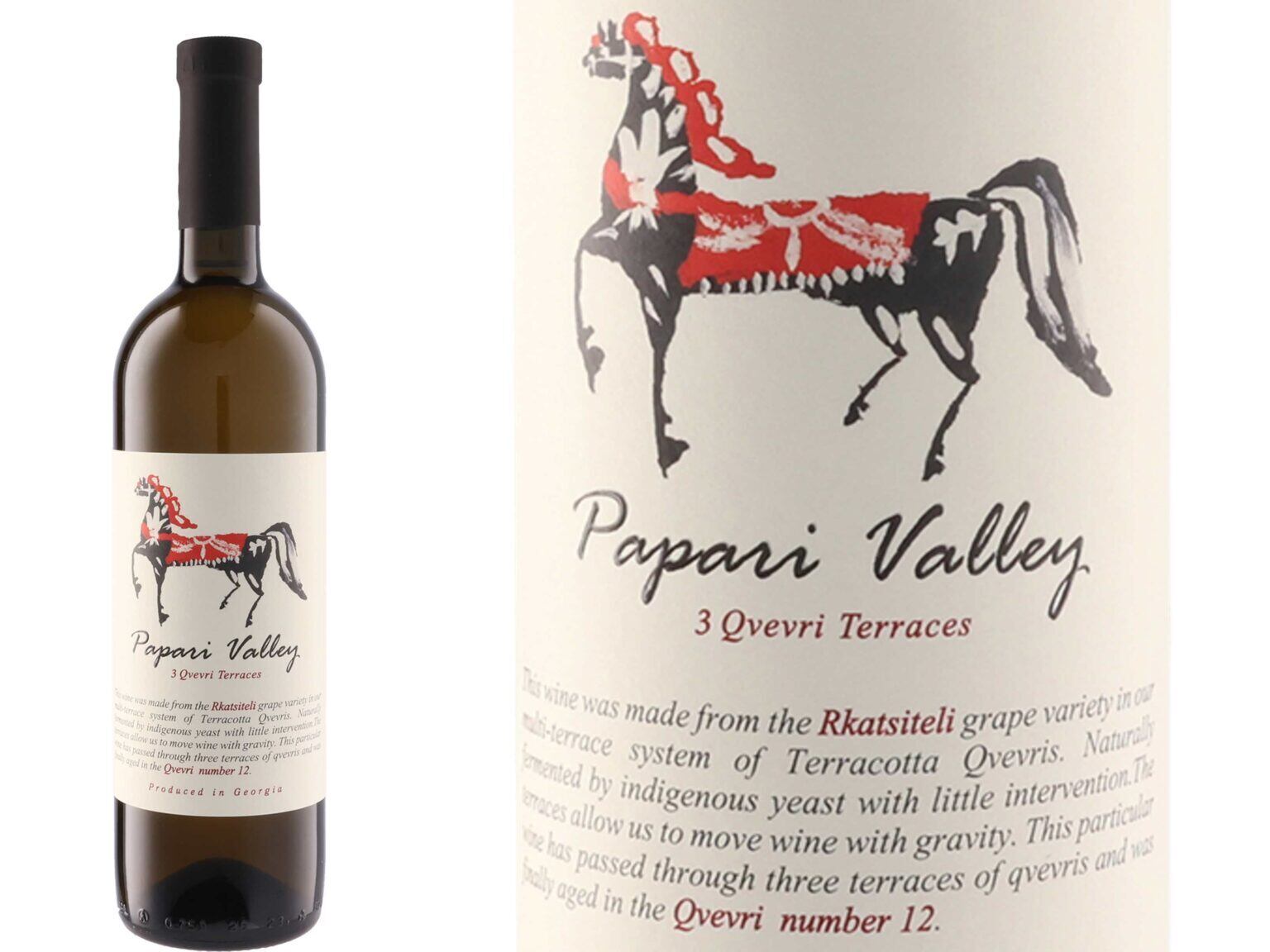ジョージアのカヘティ地区よりクリーンナチュラルなアンバーワイン。烏龍茶や枇杷、アプリコット様のニュアンスのアロマ。ミディアムライトなボディでやや軽やかながらも、心地よい旨味としっかりした渋みのバランスがよく取れている